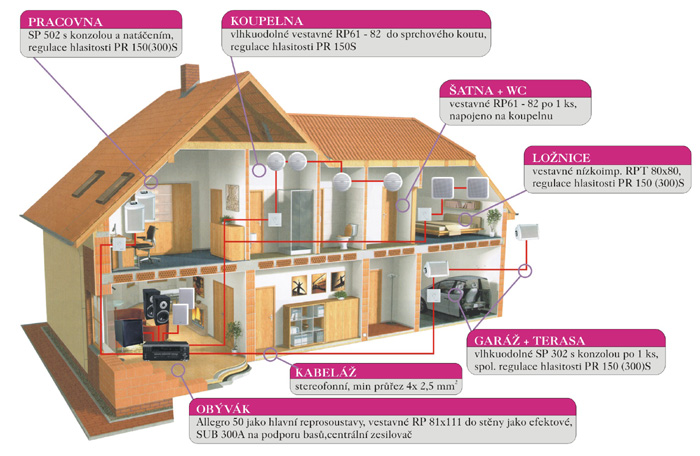 Rodinný dům patří k velmi nápaditým ozvučovacím záležitostem. My se nyní budeme věnovat ozvučení venkovnímu (např. terasy, zahradní altánky, pokojovému (mimo HiFi a domácího kino, které zde neřešíme), koupelnovému (ozvučení ve stropě nebo např. přímo ve sprchovém koutě) a ozvučení technických prostor (garáž, dílna, suterén, chodba atd.). do jisté míry lze tento návod také použit pro ozvučení bytu.
