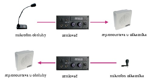 Ozvučení přepážek a okének řešíme buďto jako duplexní (obousměrný) nebo simplexní (jednosměrný) provoz.
